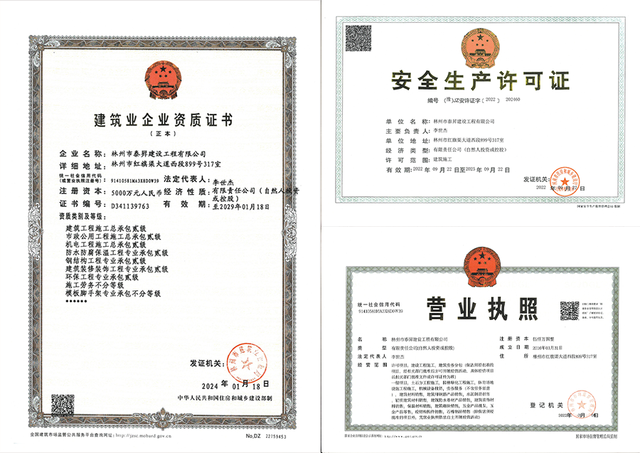 林州市泰昇建設(shè)工程有限公司始于1980年初,正式成立于2016年3月1日,注冊資金5000萬元,公司地址位于著名的“建筑之鄉(xiāng)”河南省林州市,是林州人創(chuàng)立的一家有著四十多年發(fā)展底蘊的專業(yè)化、標(biāo)準(zhǔn)化建筑工程公司。 公司現(xiàn)有員工376人,各類專業(yè)技術(shù)人員89人,其中一級建造師6人,二級建造師18人,擁有中高級職稱的工程技術(shù)和工程管理人員27人,初級技術(shù)管理人員38人。 “精細(xì)管理、精準(zhǔn)經(jīng)營,精益求精打造精品工程;為人樸實、工作扎實,踏踏實實做實企業(yè)發(fā)展。”這是泰昇人在艱苦的創(chuàng)業(yè)過程中磨礪出來的企業(yè)性格。